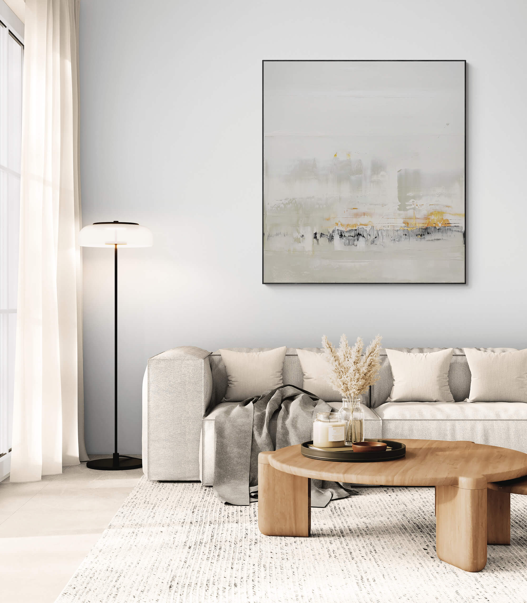 the work is made of acrylic on canvas and covered with a protective layer of varnish.