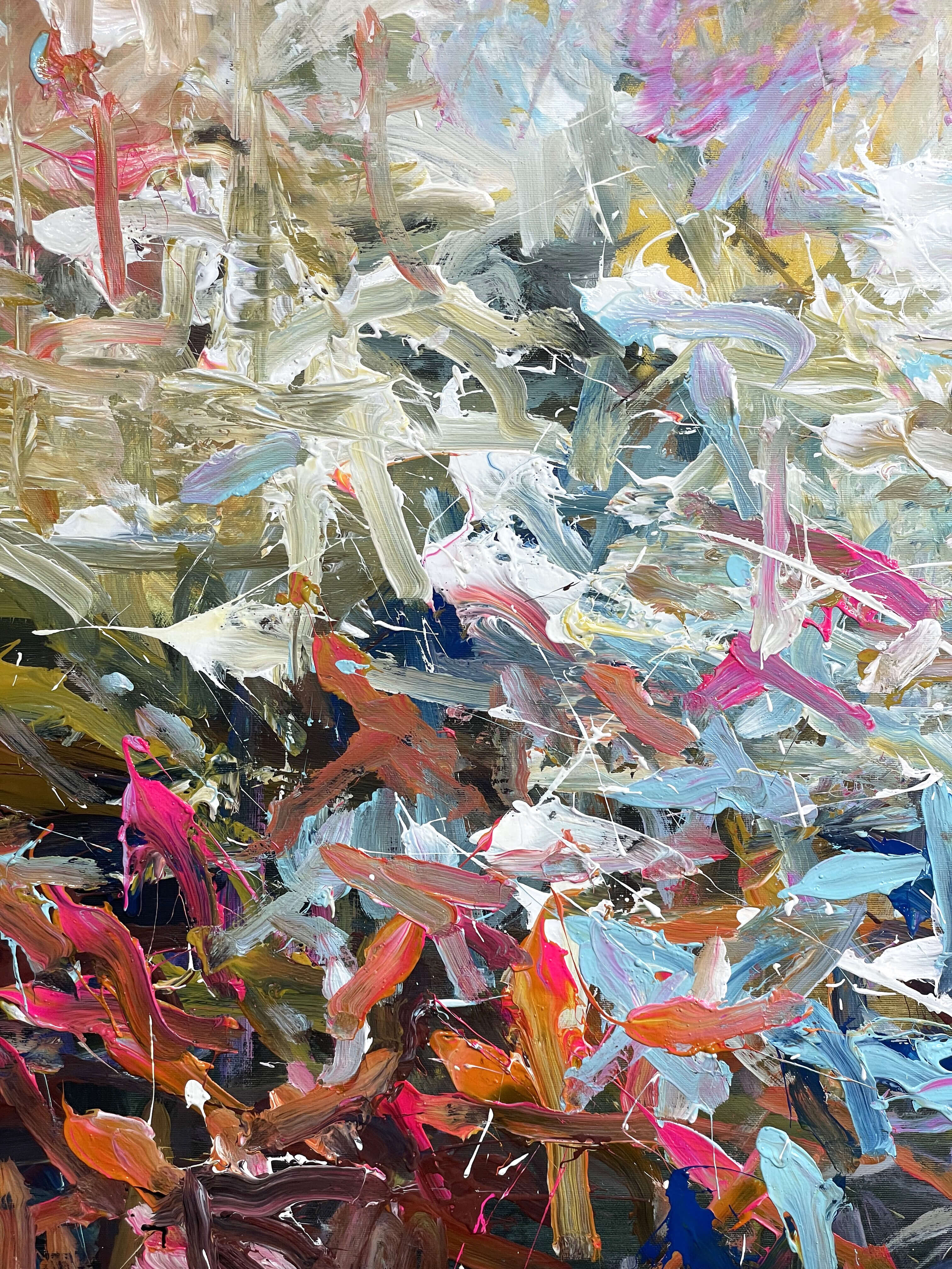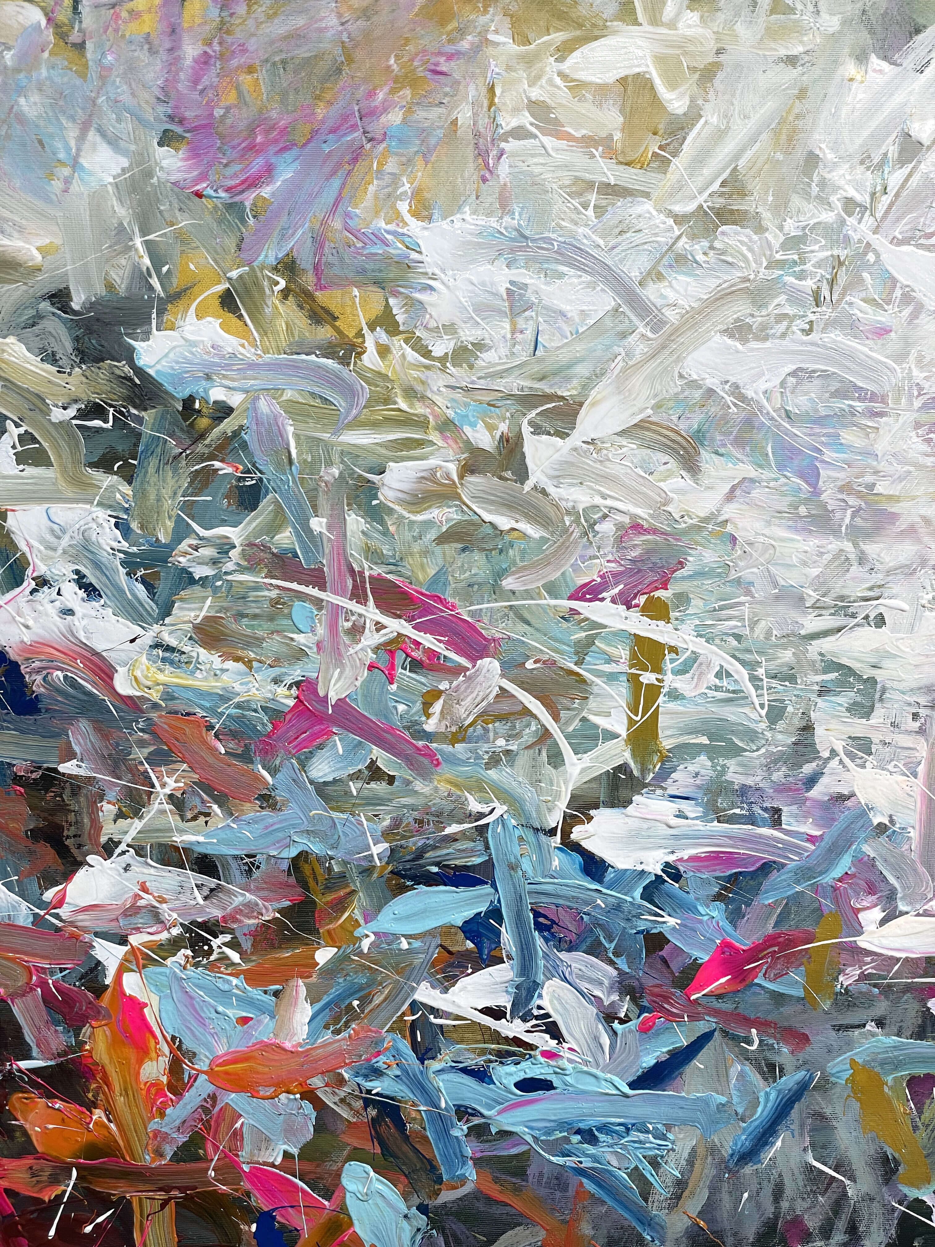 the work is made of acrylic on canvas and covered with a protective layer of varnish.
