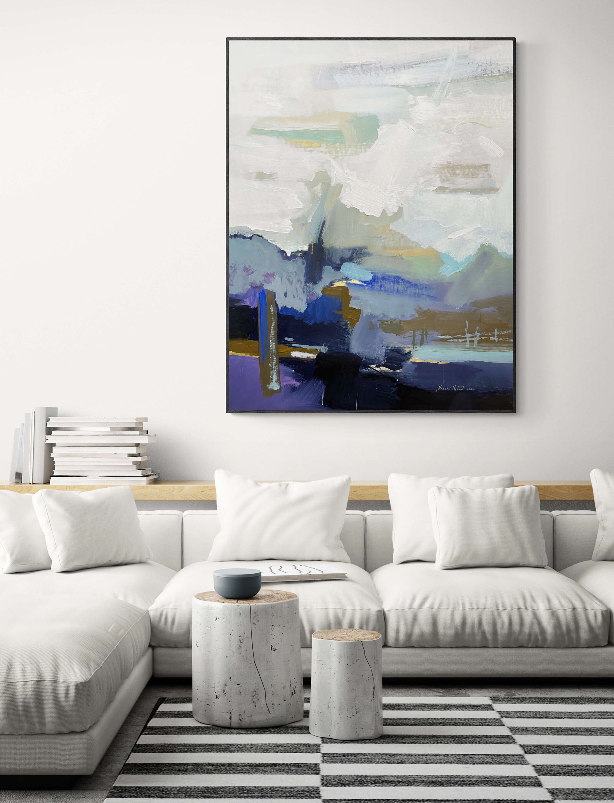 the work is made of acrylic on canvas and covered with a protective layer of varnish.
