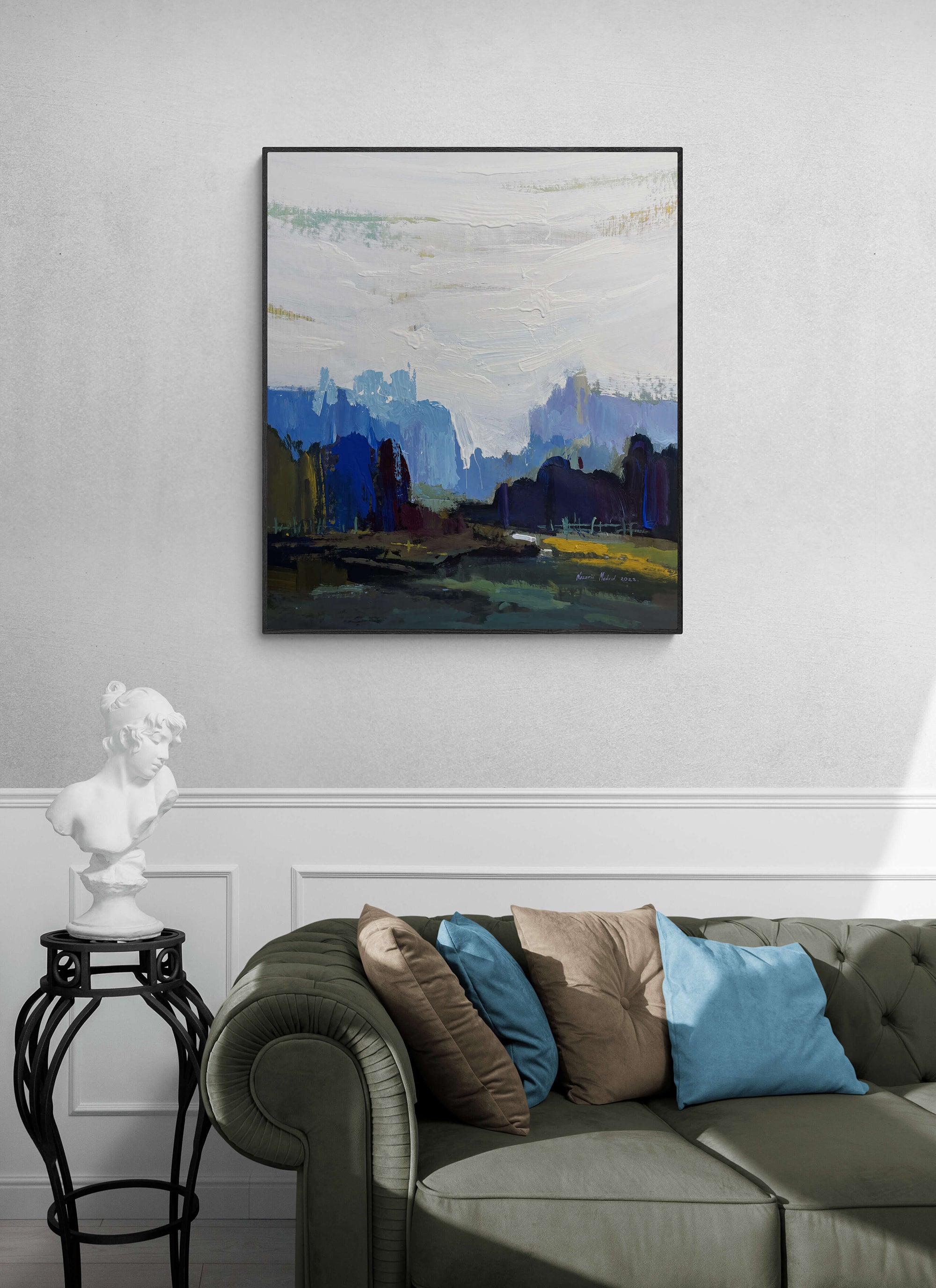 the work is made of acrylic on canvas and covered with a protective layer of varnish.