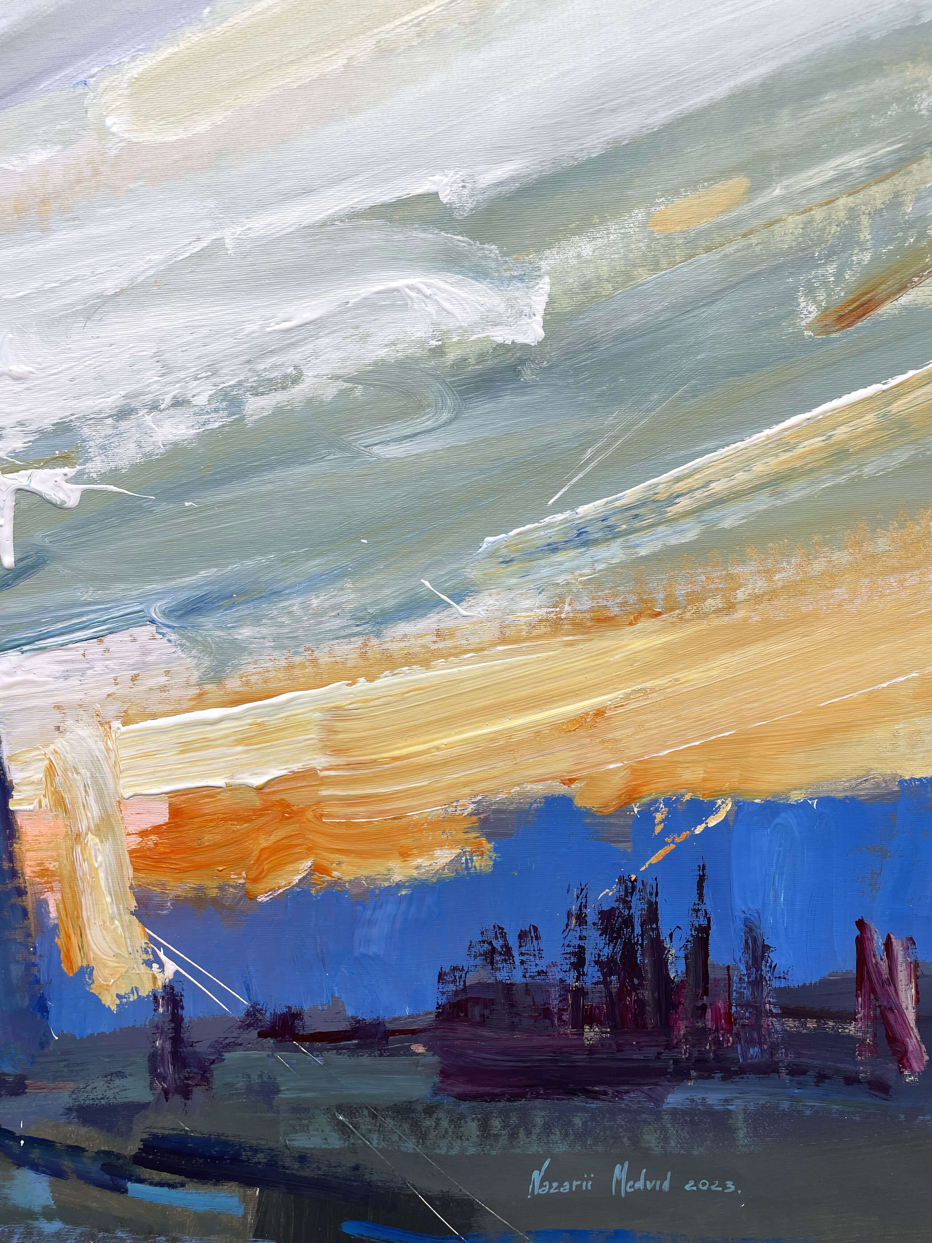 the work is made of acrylic on canvas and covered with a protective layer of varnish.