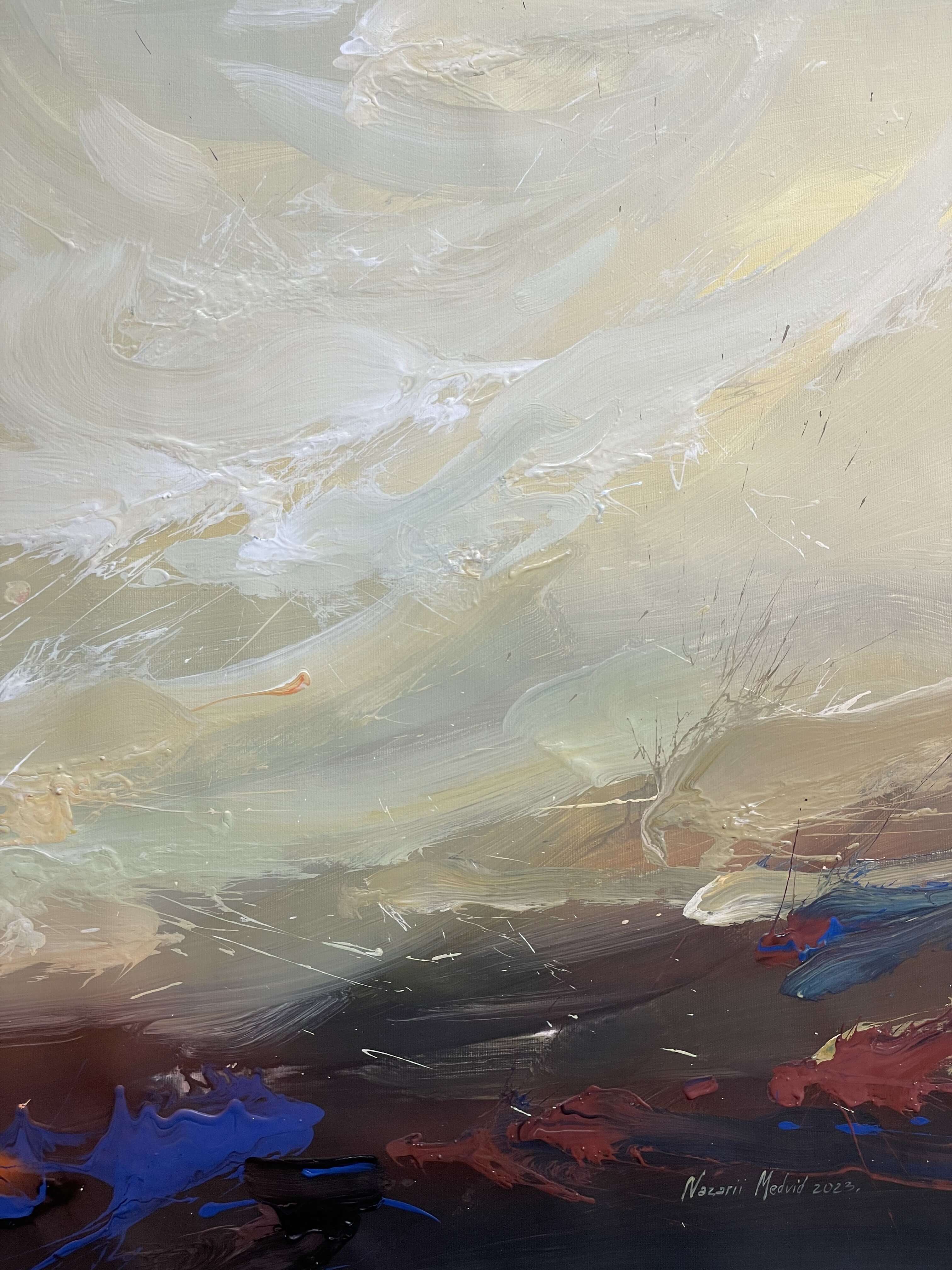 the work is made of acrylic on canvas and covered with a protective layer of varnish.