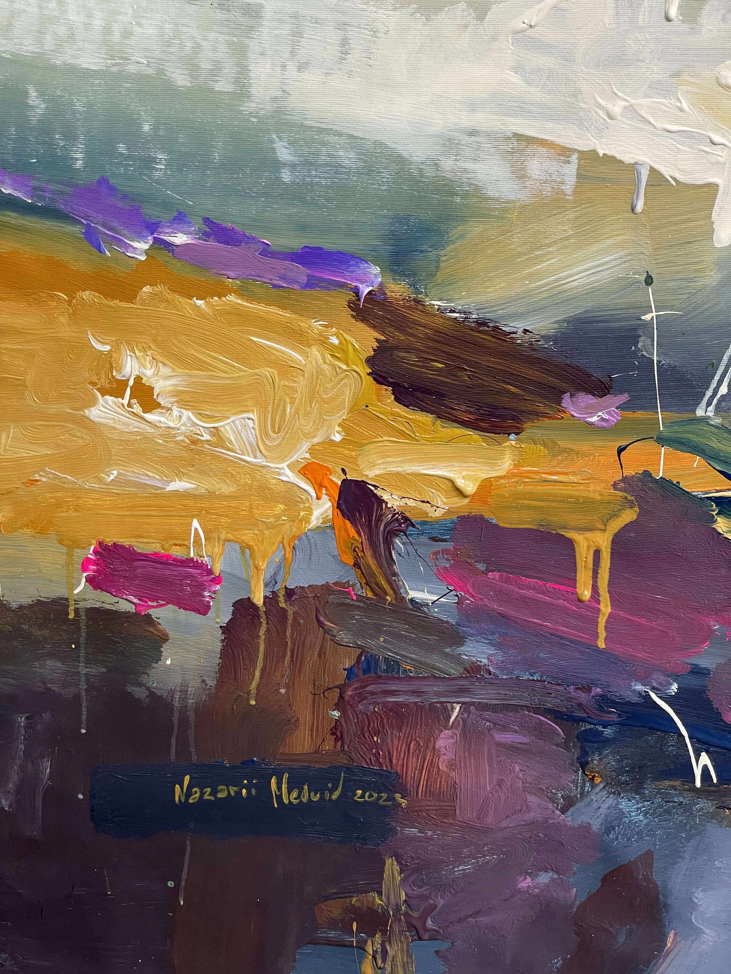 the work is made of acrylic on canvas and covered with a protective layer of varnish.