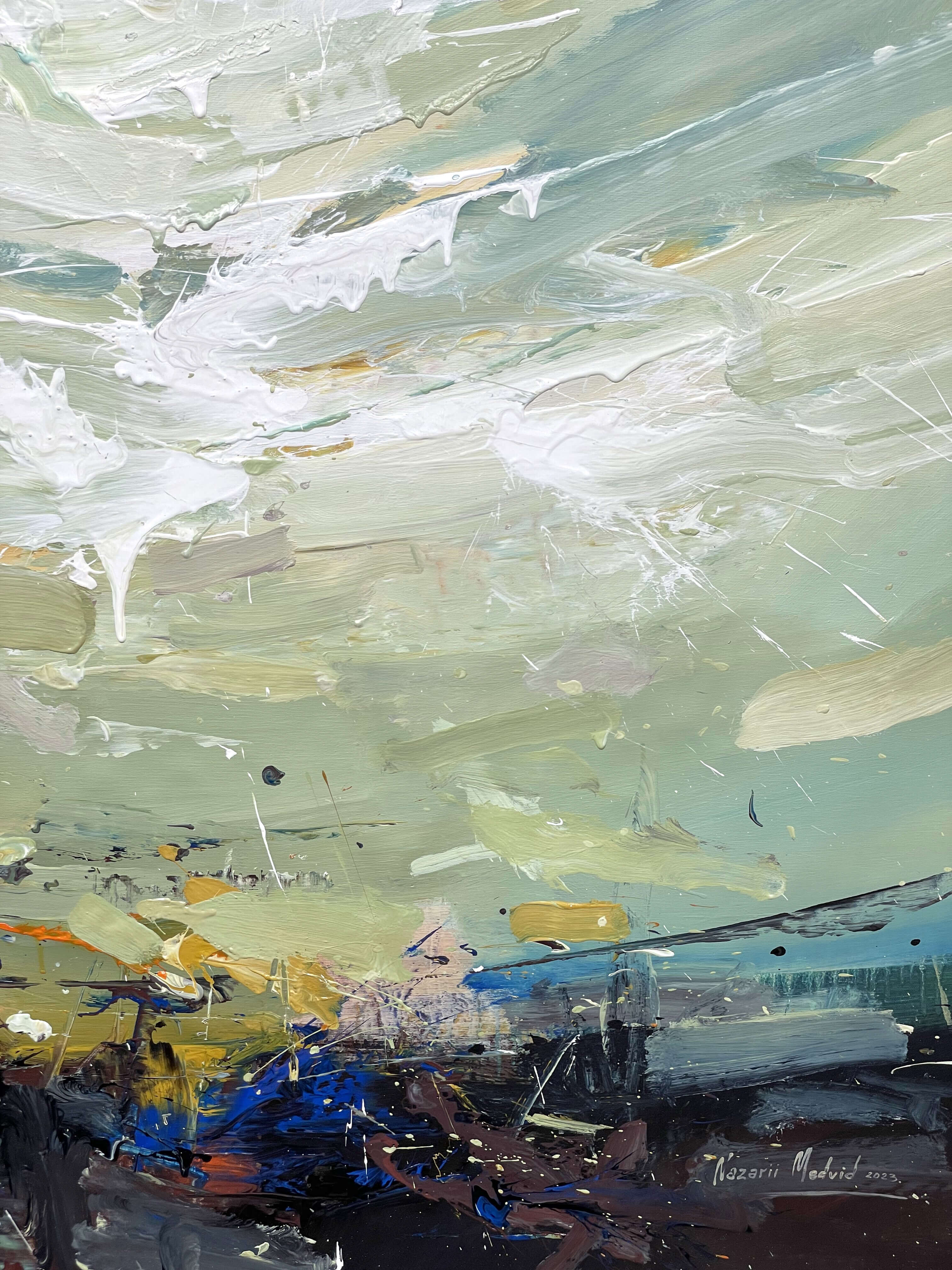 In times of overload of visual impressions, I try to send the viewer on a journey of discovery across the painting surface and sensitive him for the few and more in color, structures, cracks and textures. "Material, color and composition, a perpetual challenge to create something new.