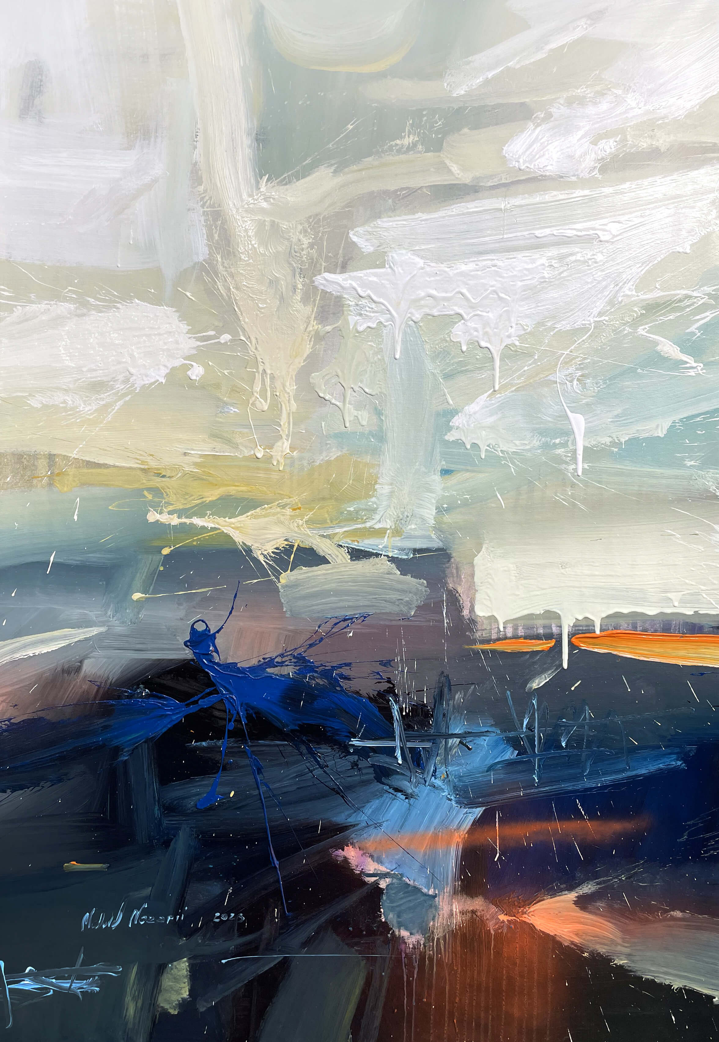 In times of overload of visual impressions, I try to send the viewer on a journey of discovery across the painting surface and sensitive him for the few and more in color, structures, cracks and textures. "Material, color and composition, a perpetual challenge to create something new.
