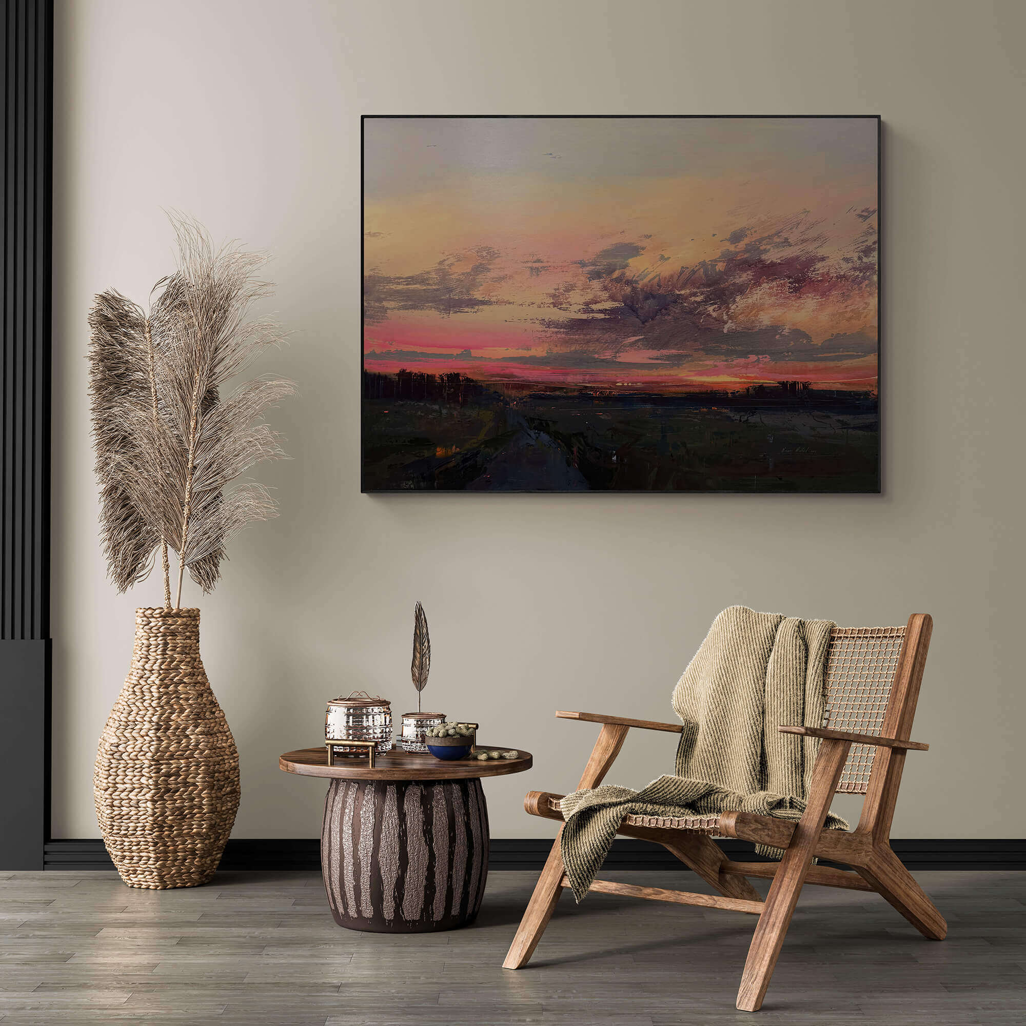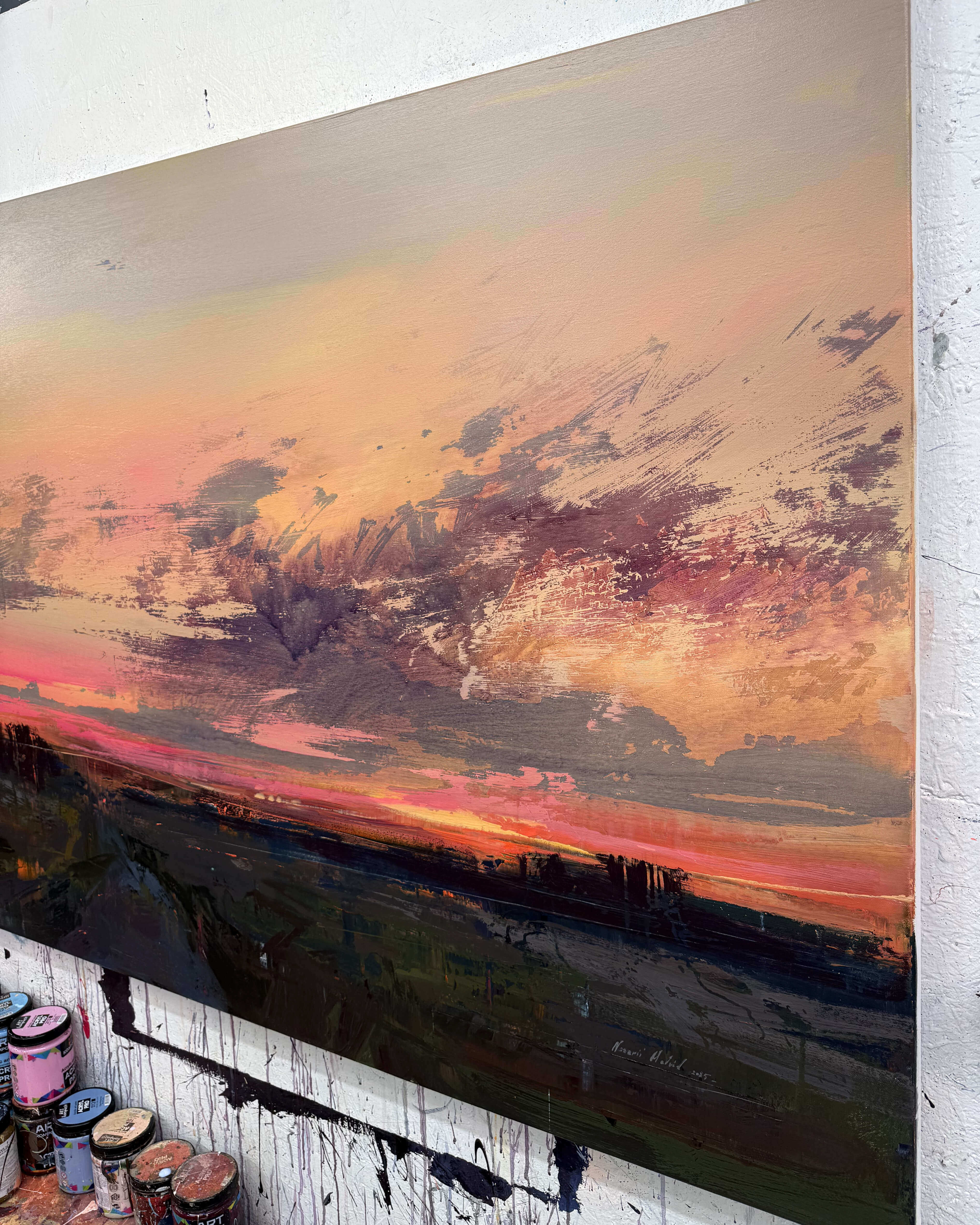 the work is made of acrylic on canvas and covered with a protective layer of varnish.