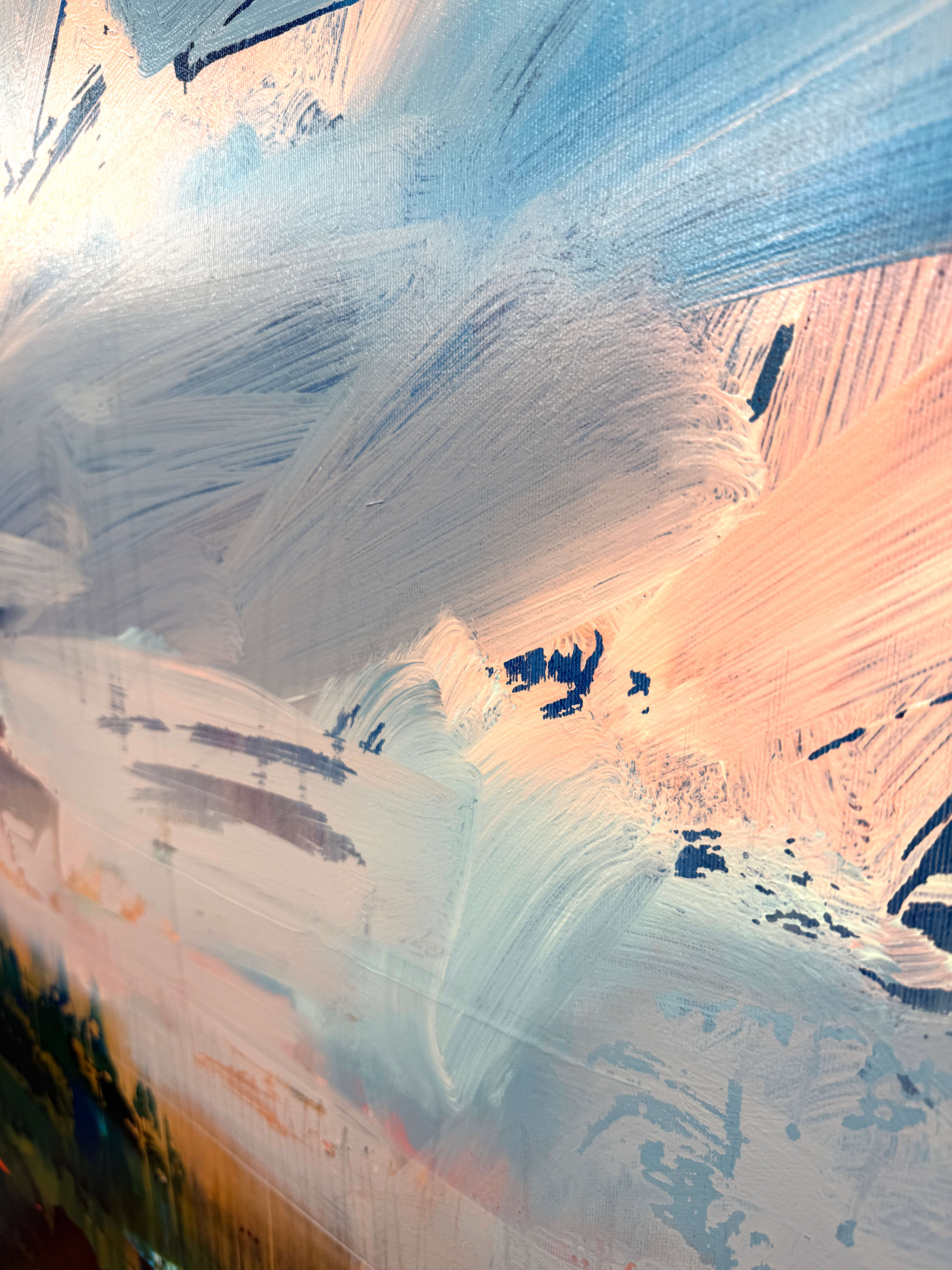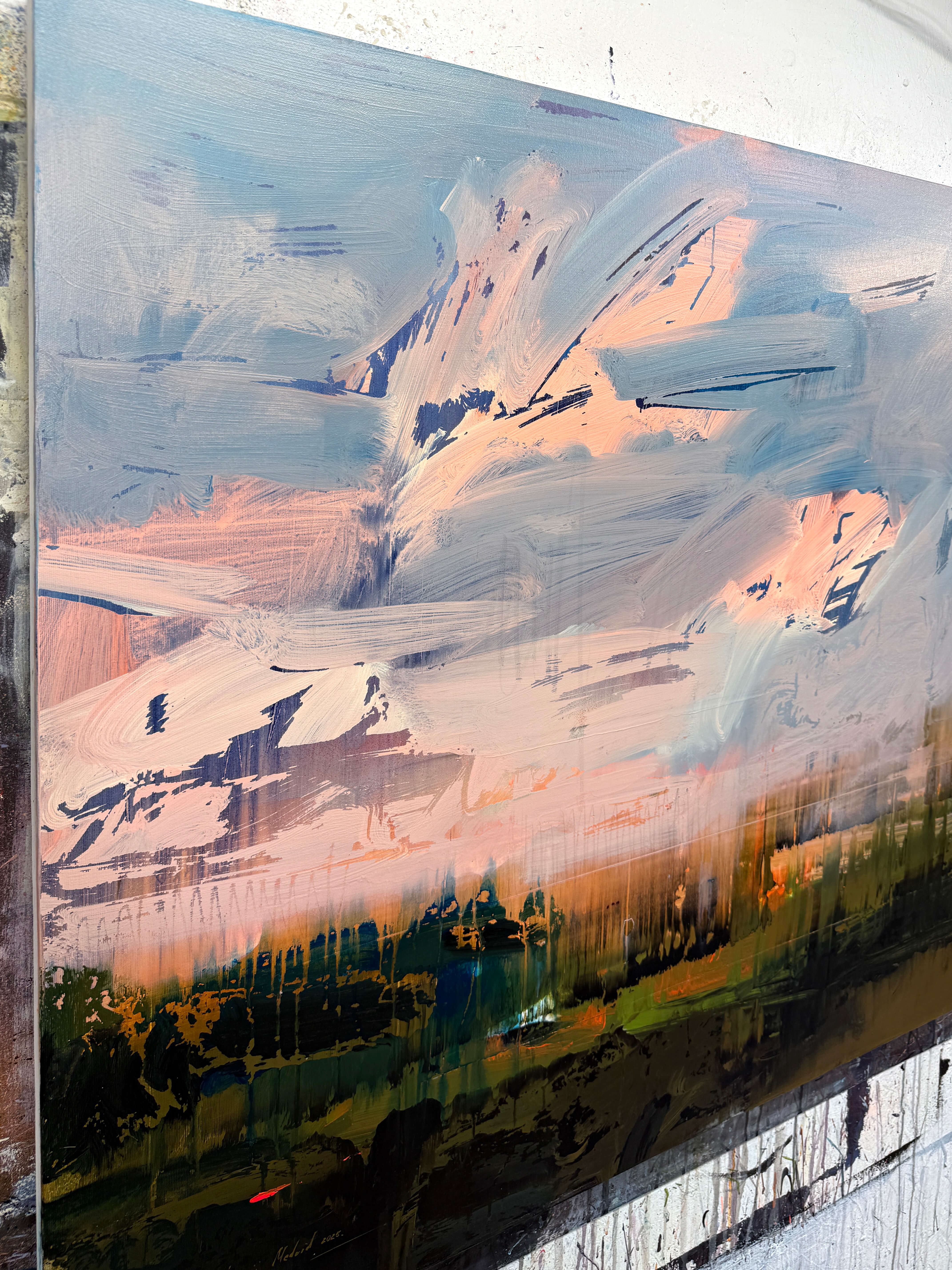 the work is made of acrylic on canvas and covered with a protective layer of varnish.