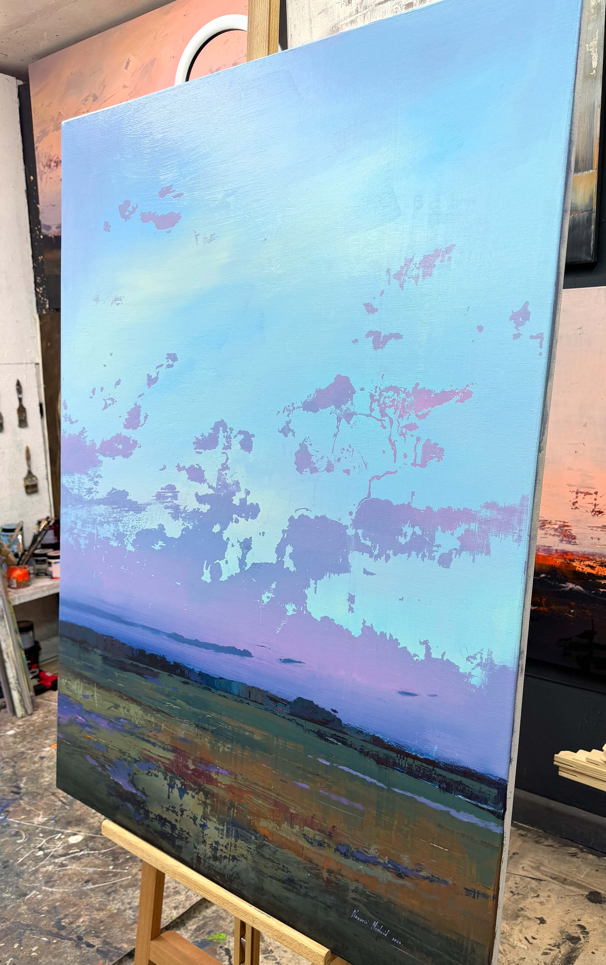 the work is made of acrylic on canvas and covered with a protective layer of varnish.